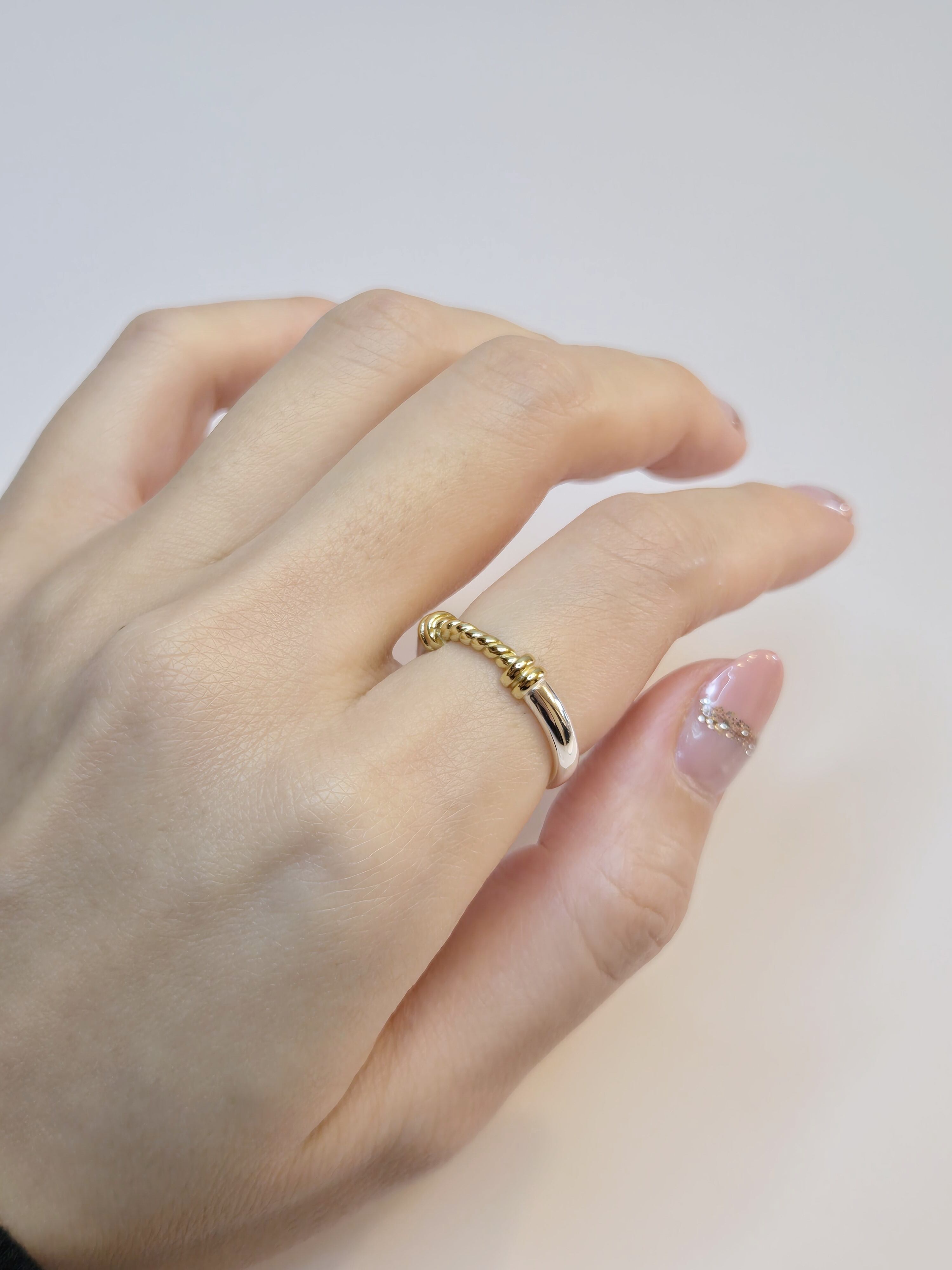 洗練されたデザインが魅力のダブルカラーリング。シルバー925の素材に、ゴールドとシルバーの美しいミックスが光ります。フリーサイズで、指に優しくフィットし、自分らしいスタイルを演出します。シンプルながらも個性的なリングは、デイリーコーデにも特別な日にも幅広く対応可能なアイテムです。