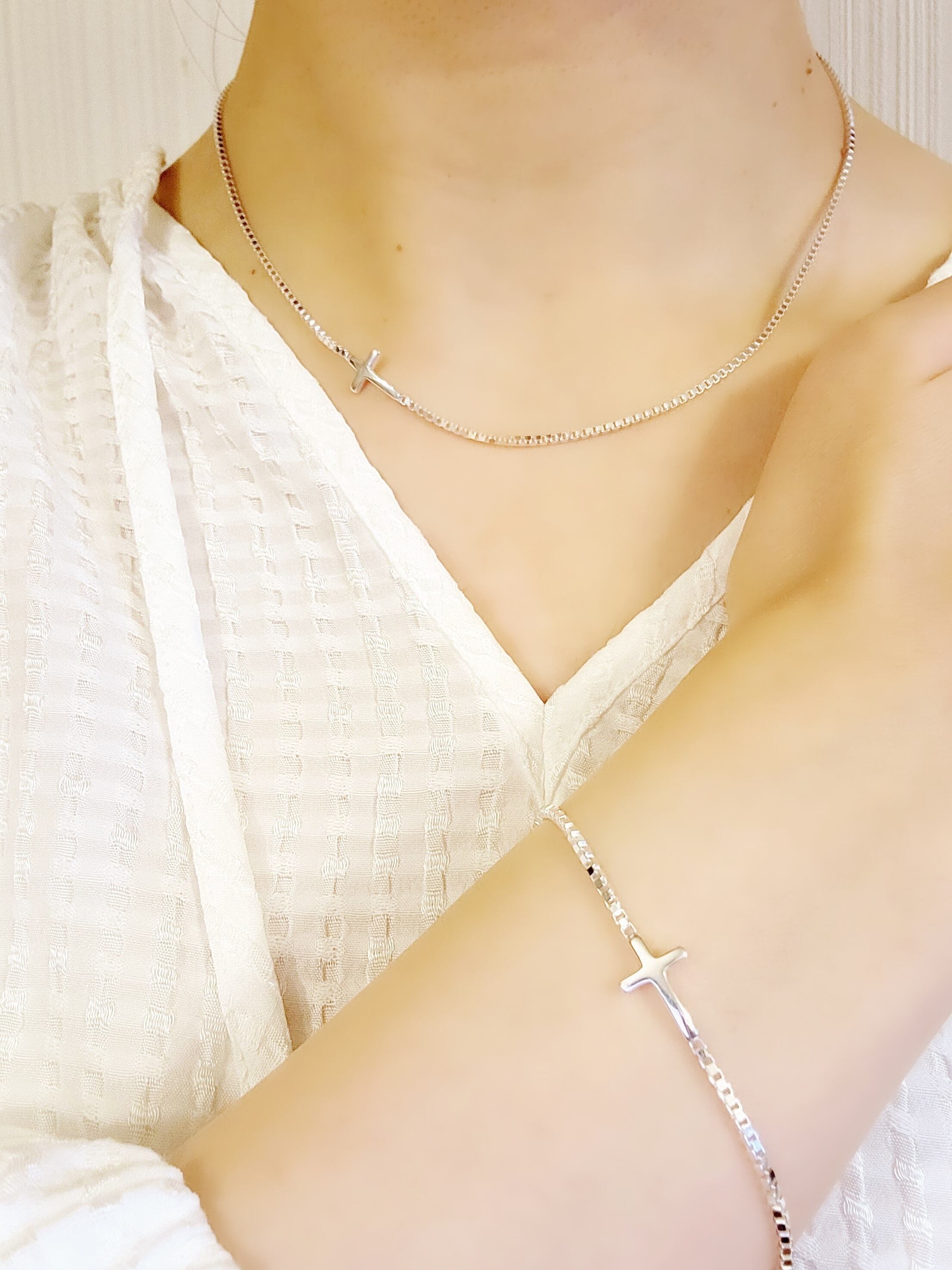 チェーンにクロスがついた、シンプルだけど他にはないデザインです。YシャツやTシャツなどシンプルなお洋服にも映える商品です。