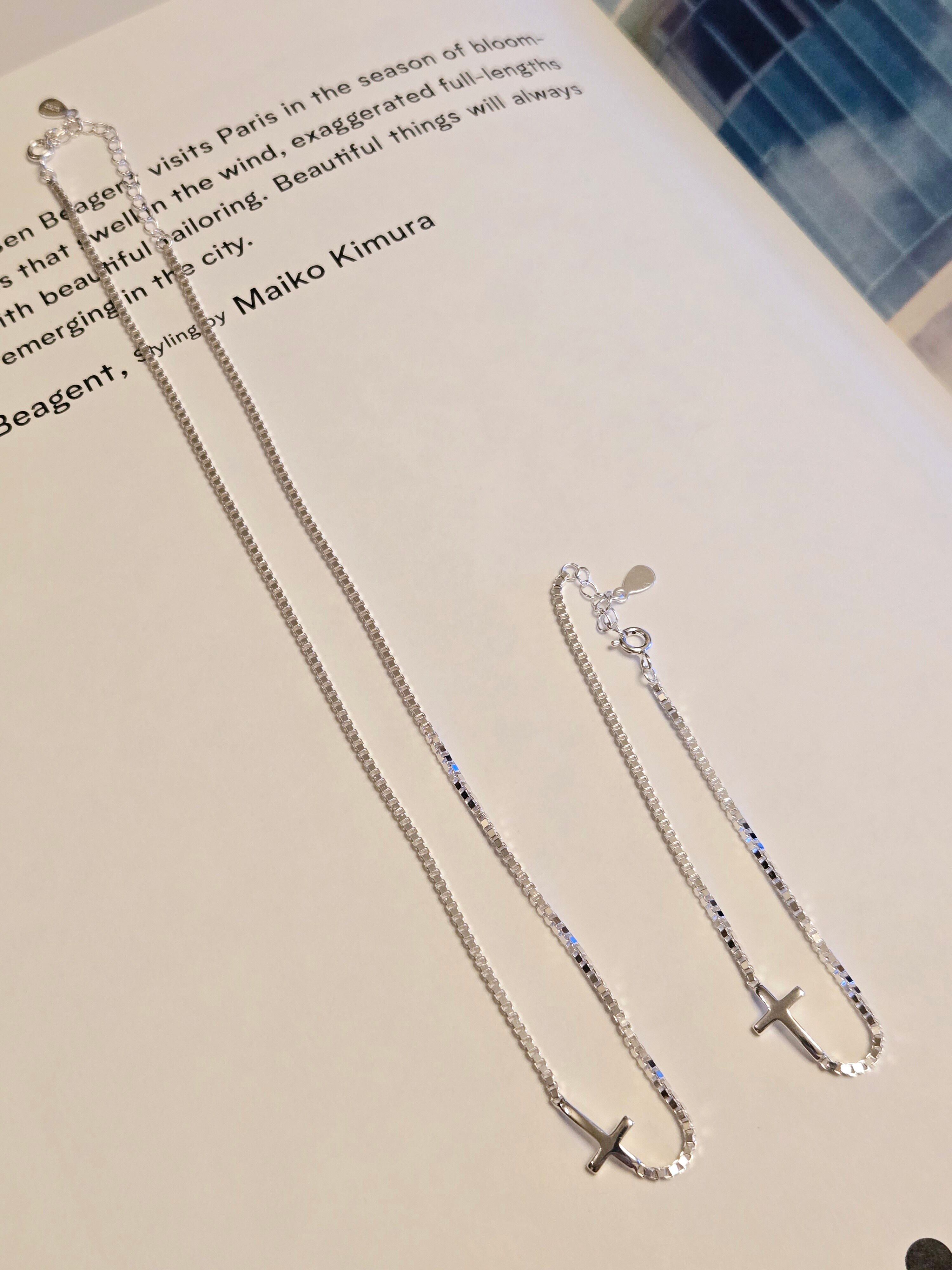チェーンにクロスがついた、シンプルだけど他にはないデザインです。YシャツやTシャツなどシンプルなお洋服にも映える商品です。