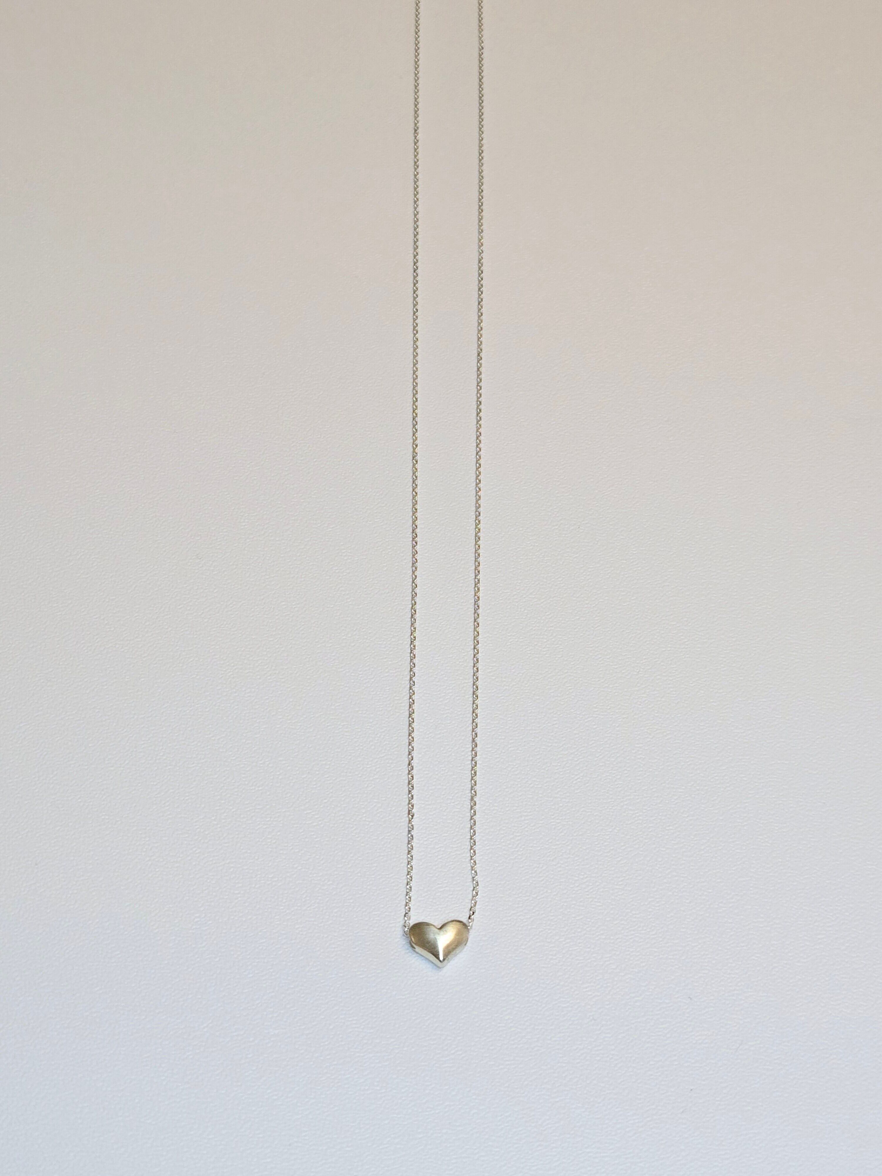 シンプルなハートのネックレス。どんなお洋服にも合わせやすく、1つ持っているだけで使いまわせる商品です。