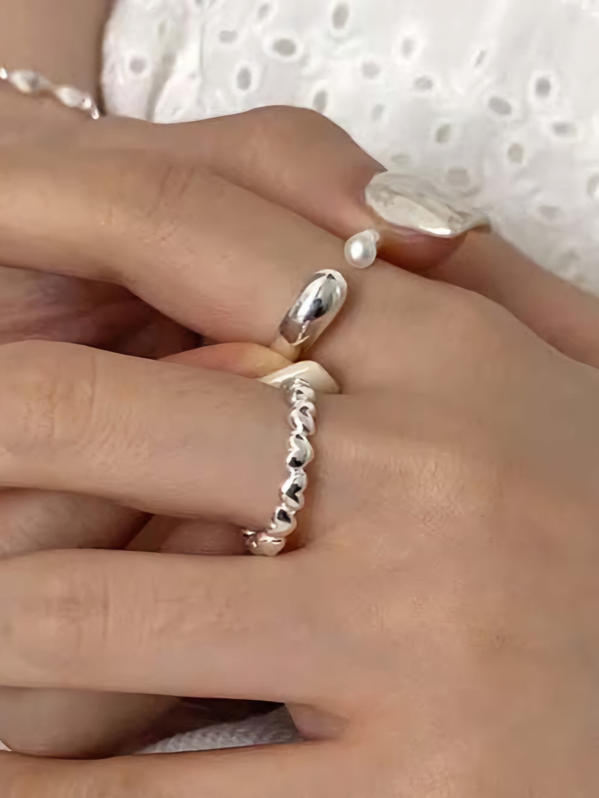 小さなハートが連なったデザインが特徴の繊細なリング。細身のシルエットで、単品使いはもちろん、他のリングとの重ねづけにもぴったりです。愛らしいモチーフが華やかさを添え、どんなスタイルにも溶け込みやすい仕上がりになっています。