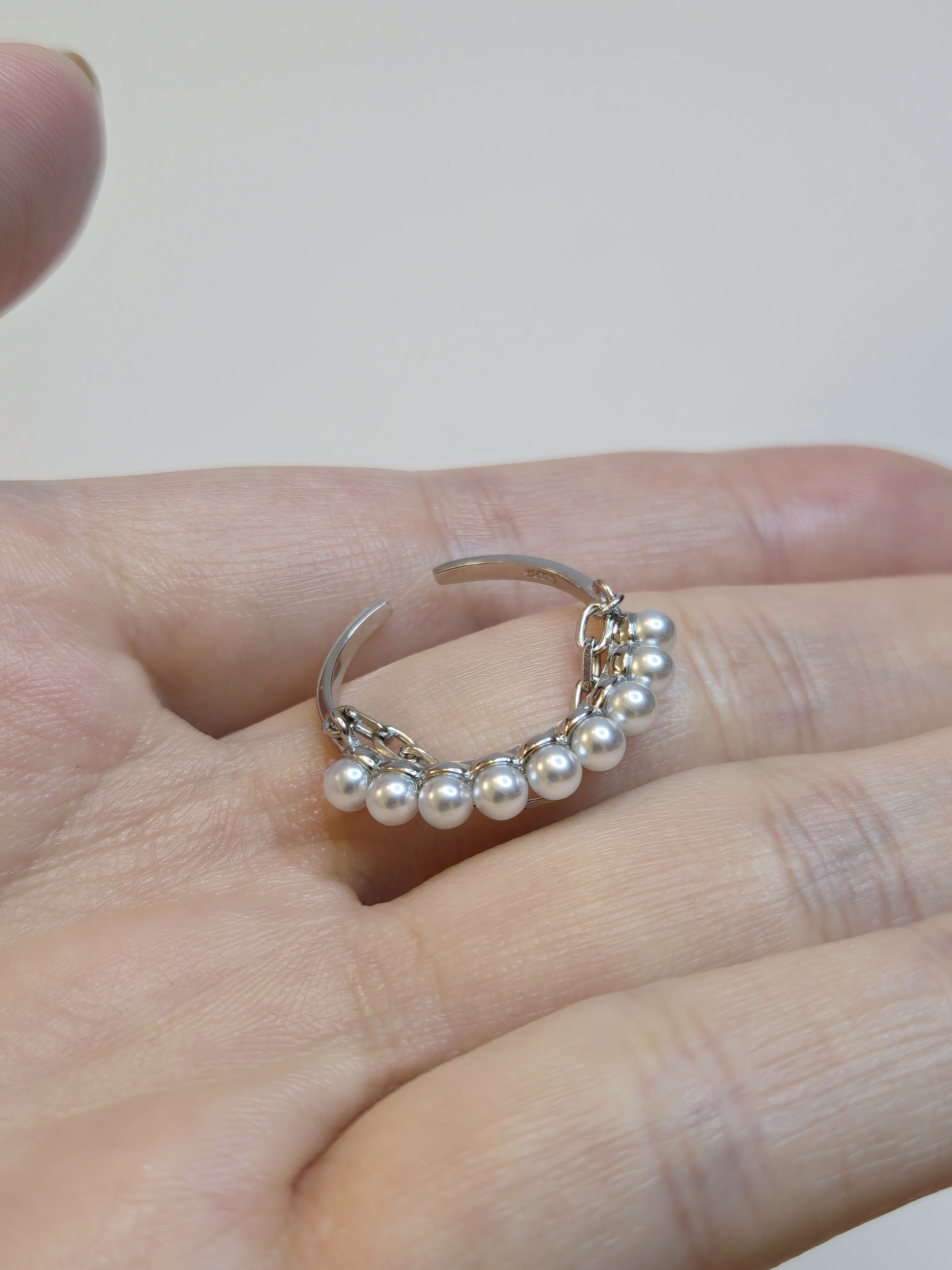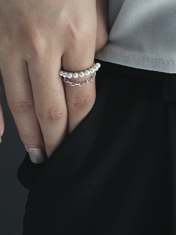 繊細に並んだ9つの小粒パールが、指元を可憐に彩るパールリング。上品な輝きが魅力で、デイリー使いはもちろん、特別な日にもぴったりな一品です。カジュアルスタイルにさりげない華やかさをプラスしたり、モードな装いに上品さを添えたりと、幅広いコーディネートにマッチ。シンプルながらも存在感のあるデザインで、様々なシーンで活躍してくれる万能アクセサリーです。